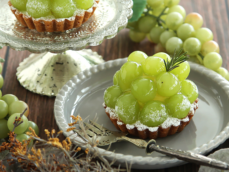 パリッとした歯ざわりにジューシーで甘酸っぱい白ぶどうのおいしさが詰まったタルトレット。