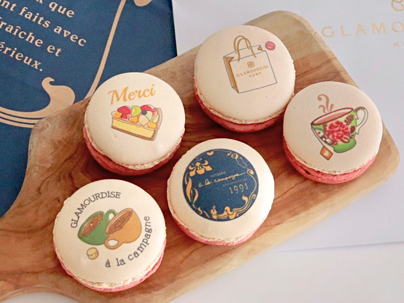 ア・ラ・カンパーニュやグラモウディーズのイメージイラストが入った「オリジナル マカロン」を一つプレゼントいたします。