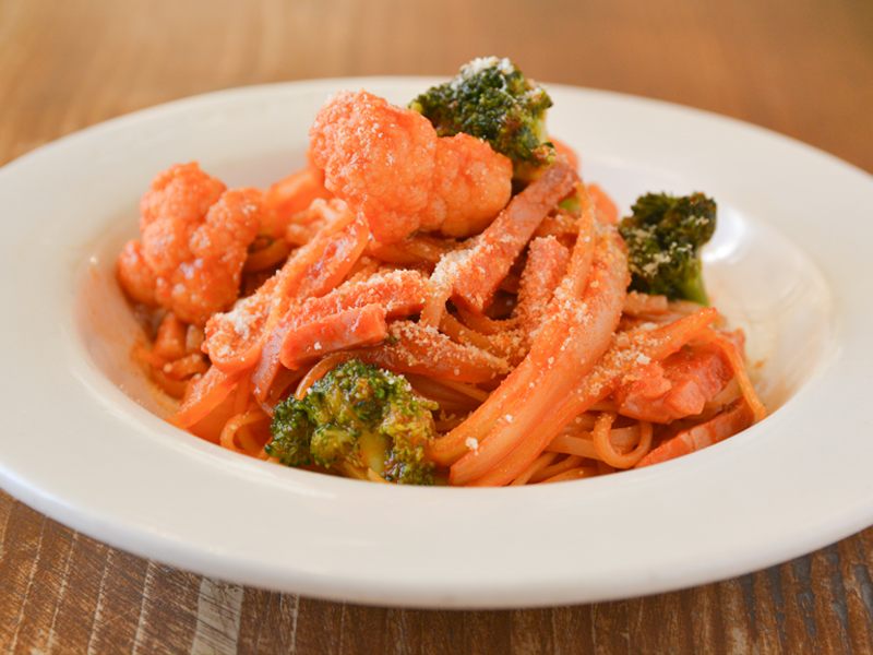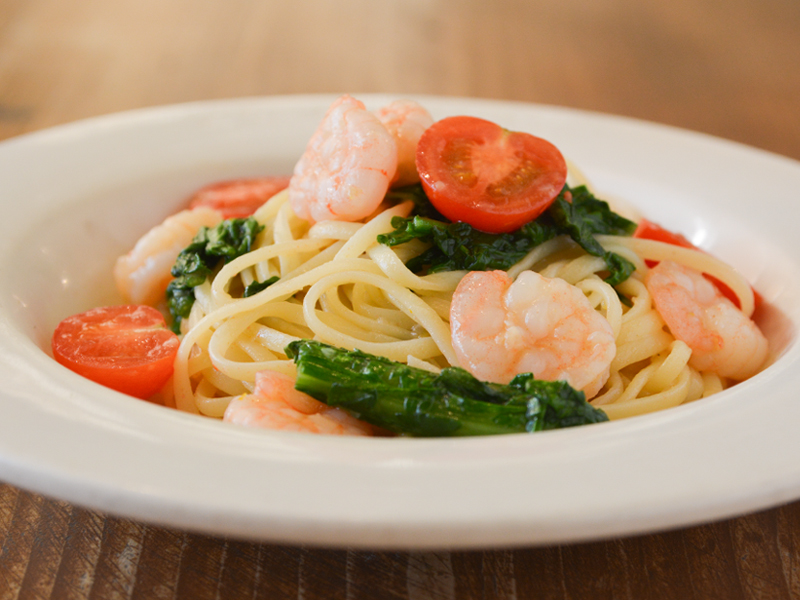 柚子胡椒香る 春菊と海老のトマト入りペペロンチーノ