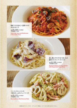 こだわりのタルトやケーキはもちろん、パスタなどのフードメニューも好評。ランチにもぜひお使いください。