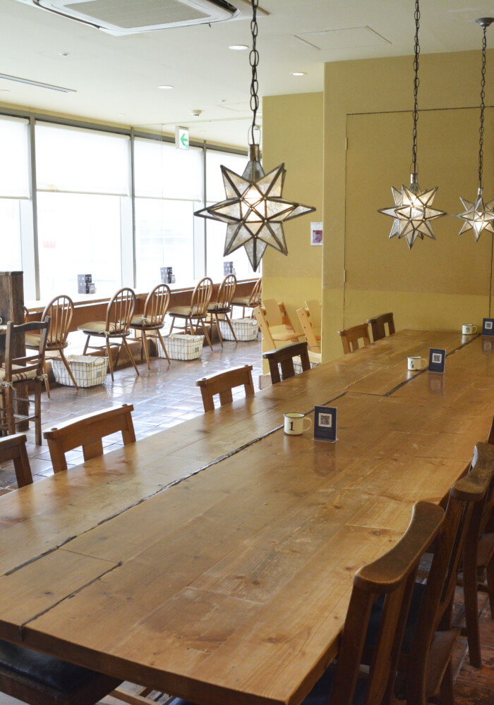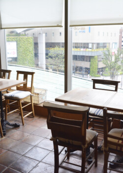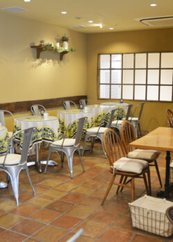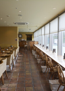 ア・ラ・カンパーニュのカフェは、オーナー自ら買い付けたアンティーク家具たちが中心となり、