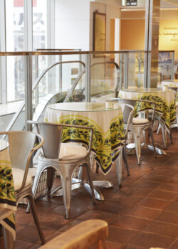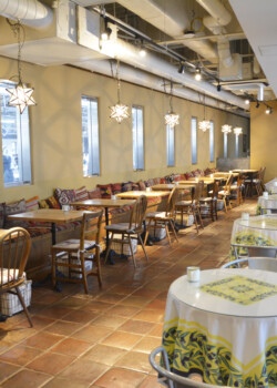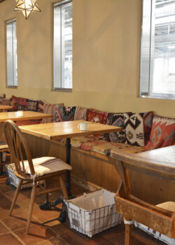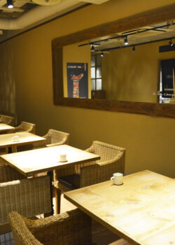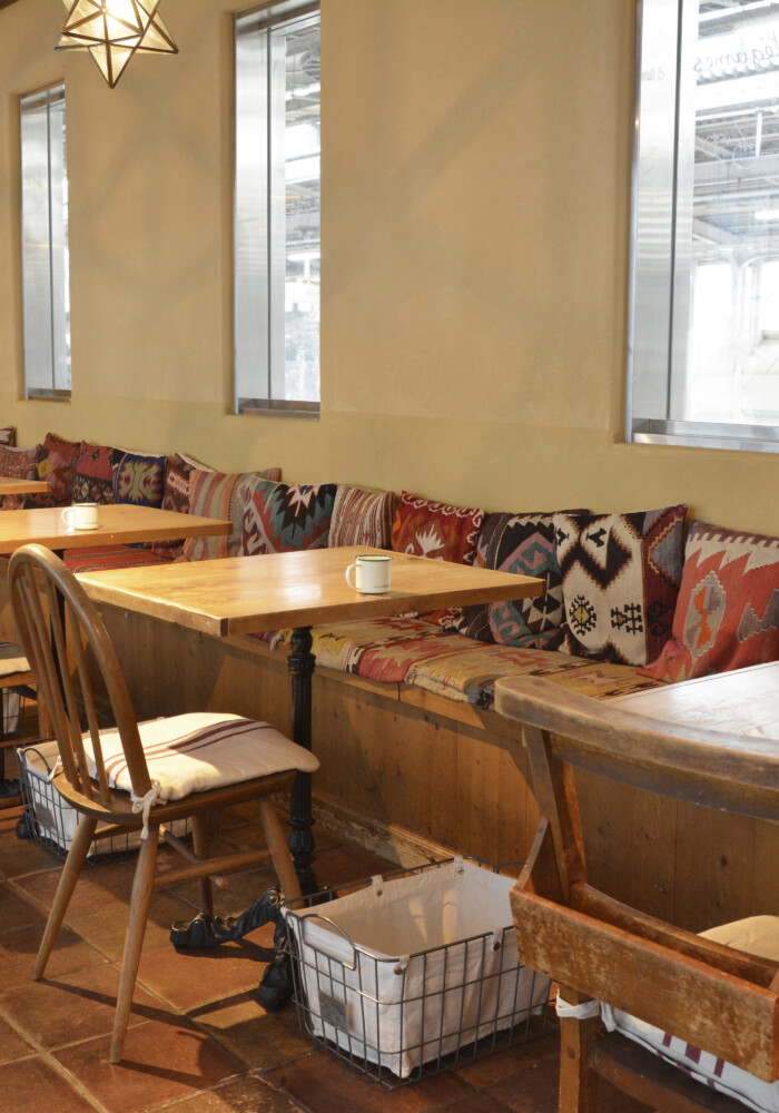 ア・ラ・カンパーニュのカフェは、オーナー自ら買い付けたアンティーク家具たちが中心となり、