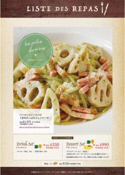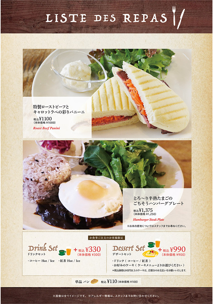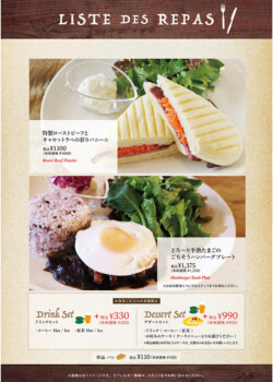 こだわりのタルトやケーキはもちろん、パスタなどのフードメニューも好評。ランチにもぜひお使いください。