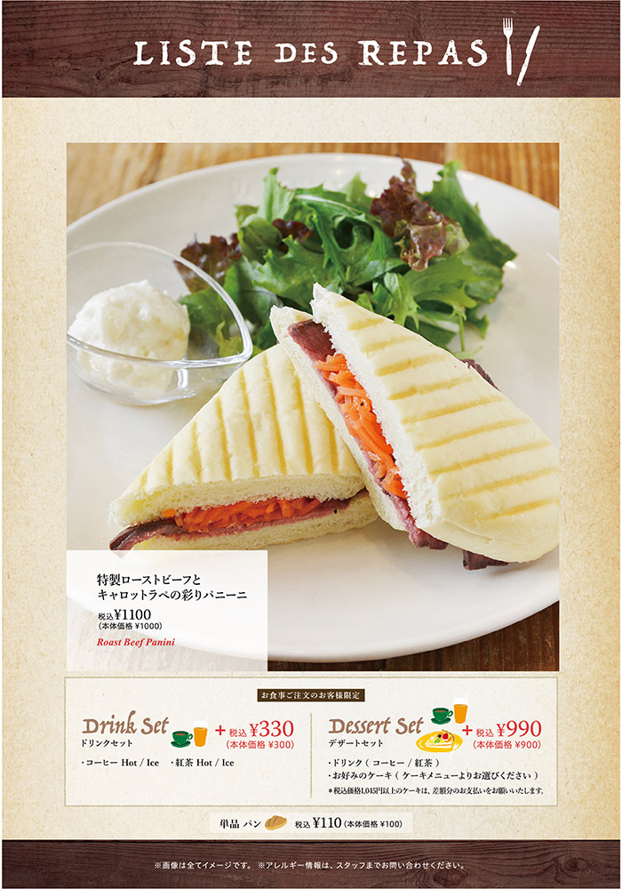こだわりのタルトやケーキはもちろん、パスタなどのフードメニューも好評。ランチにもぜひお使いください。