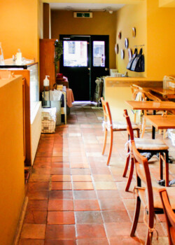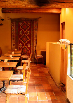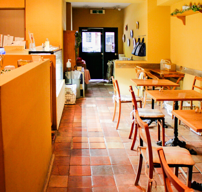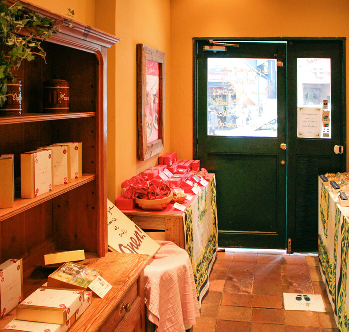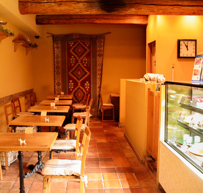 ア・ラ・カンパーニュのカフェは、オーナー自ら買い付けたアンティーク家具たちが中心となり、