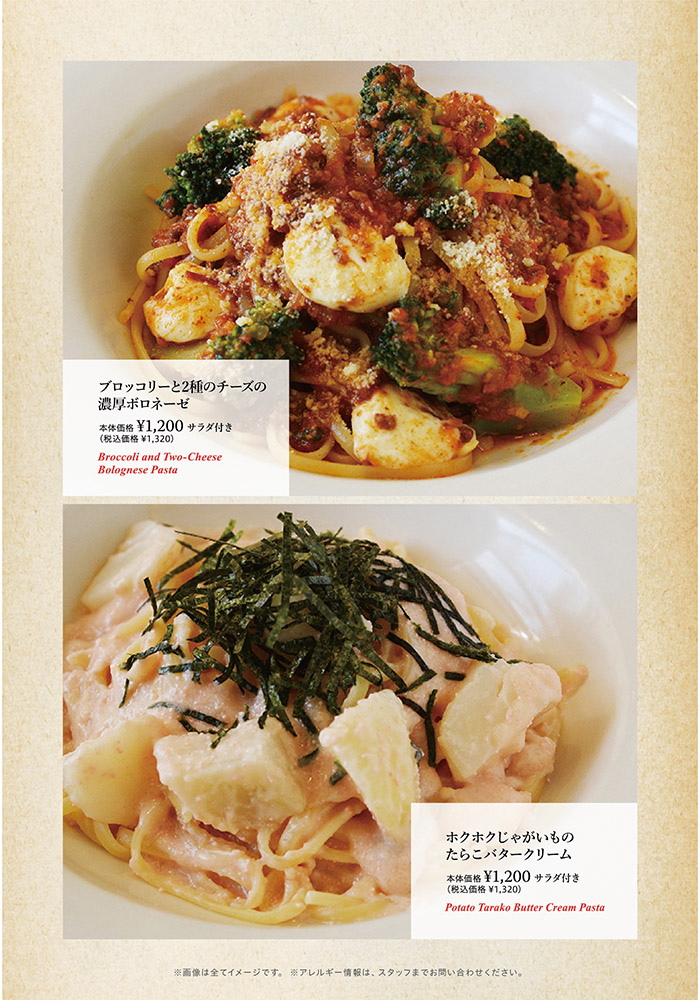 こだわりのタルトやケーキはもちろん、パスタなどのフードメニューも好評。ランチにもぜひお使いください。