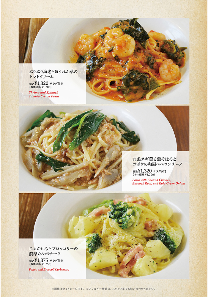 こだわりのタルトやケーキはもちろん、パスタなどのフードメニューも好評。ランチにもぜひお使いください。