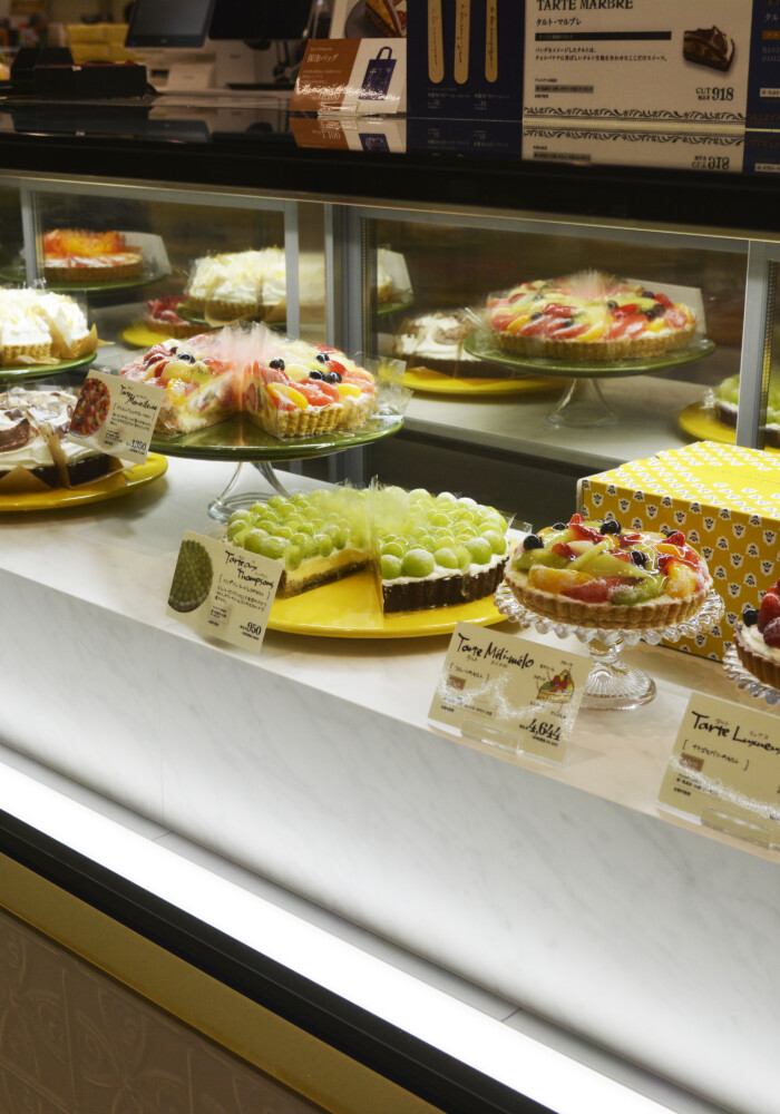 自慢の手作りタルトは、主役となるフルーツの個性を引き出すため、パティシエがクリームやタルト生地などの素材とじっくり対話を重ねました。食べごろがぎゅっとつまった12種ほどが、毎日ショーケースに並びます。